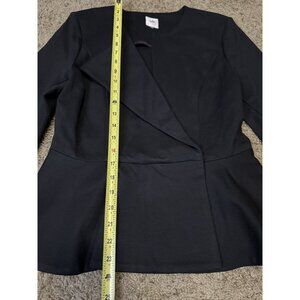 CABI Agency Blazer Jacket Black Snap Button Peplum Ponte Knit Career Office Sz 6