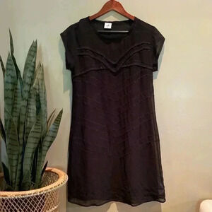 CABI BLACK MIDI DRESS WITH RUFFLES TRIBAL XS