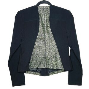 CABI Black Green Metallic Tweed Textured Panel Media Jacket Style 3036 Sz Small
