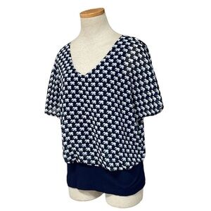 CABI Blouse Women's Small Blue Elephant Print Parade Top Short Sleeve Style 5345