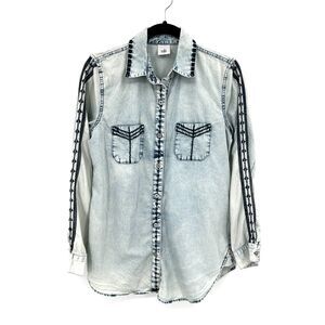 CABI Blue Bardot Acid Wash Boho Embroider Long Sleeve Button Up Chambray Top XS