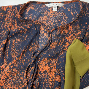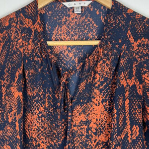 Cabi Burnt Orange Navy Snakeskin Faux Wrap Blouse Size X Small
