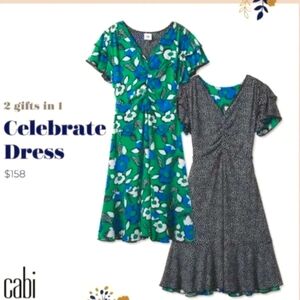CABI Celebrate Dress in both blk/wht polkadot and Green/blue floral.Size S NWT