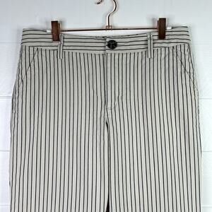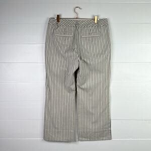 CABI Cream Blue Striped Wide Leg Cropped Trouser Pants Bottoms Size 6