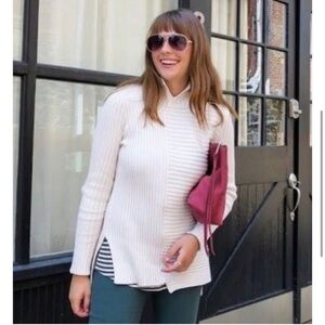 CABI D RING #3363 S rib asymmetrical cream tie back womans gorpcore sweater