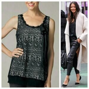 CABI Emily Lace Overlay Tie Bow Neckline Tank Blouse #552 Size Small