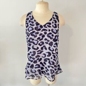 CABI Feline Purple Animal Print Peplum Sleeveless Blouse Size Small