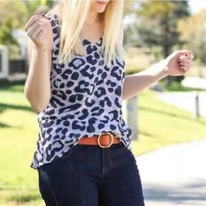 This CABI Feline Purple Animal Print Peplum Sleeveless Blouse is in great condition.