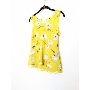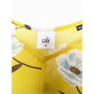 CABI Floral Top Womens Size XS Yellow Sleeveless Chiffon Sheer Ruffle Flowy