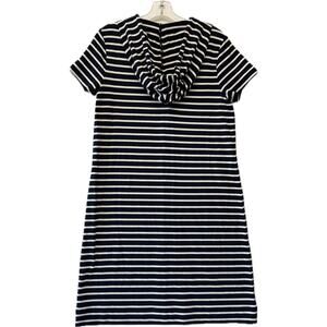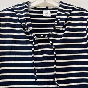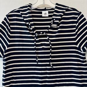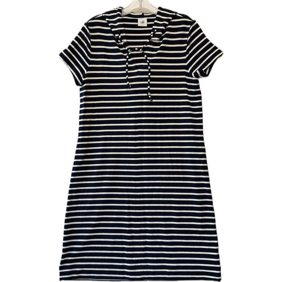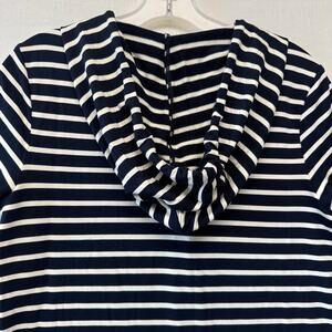 CABI Hooded Knee Length Dress Women's Size S Navy White Striped Coastal Beachy