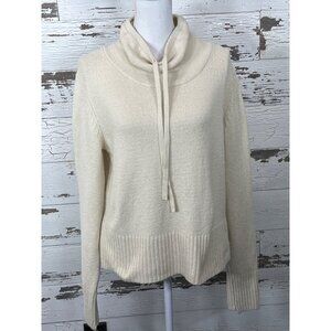 Perfect for your next trip or day at home! CAbi Hope pullover sweater features roomy fit, drawstring cowl neck, soft, cotton blend fuzzy feel, long sleeves, ribbed cuffs and hemline. In excellent condition. No holes, snags, or stains. Machine wash. Approx 20" armpit to armpit, 21" shoulder seam to hem, 26" sleeves. Cowl neck measures approx 6.5" tall when fully extended.