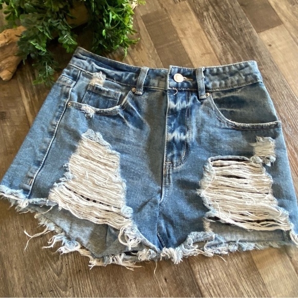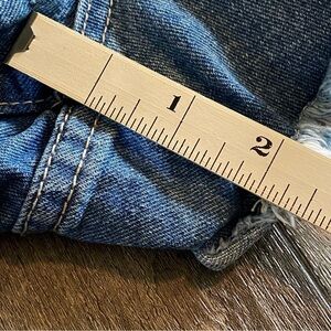 CABI Jean Shorts: High Rise Shorties w/ Black & White Checkered Inner Pockets, 0