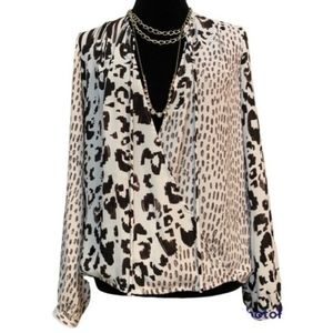 Cabi Animal SkinPrint Faux Wrap blouse Black and brown