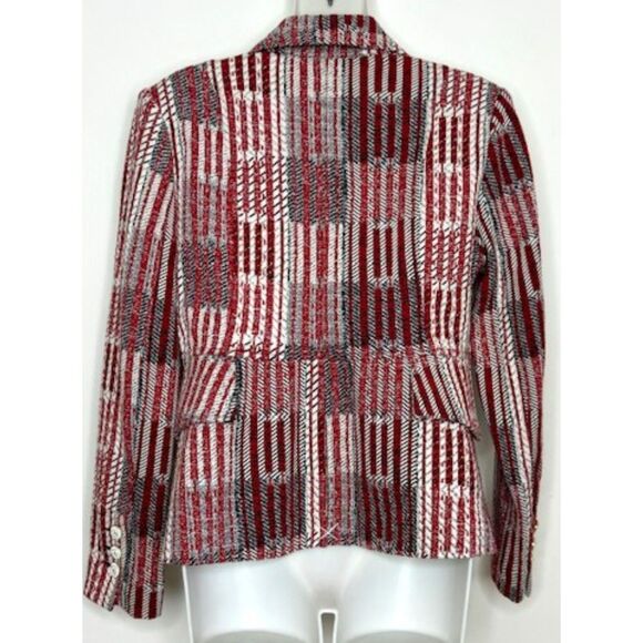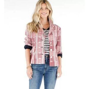 CABI NAUTICAL PATCHWORK RED WHITE & BLUE BLAZER JACKET PEPLUM SIZE S NWOT