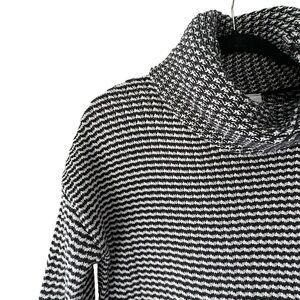 CABI | NWOT FERGIE SPLIT FRONT & BACK COWL NECK COTTON SWEATER BLACK & WHITE SM