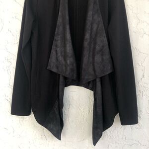 CABI Owens Faux Leather Waterfall Draped Open Front Black Jacket Size Medium