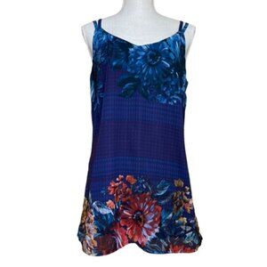 CABI Painterly Floral Blue Camisole Tank Top - Size Medium