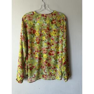 CABI Playground Blouse Women’s Size Large Style #6503 Floral Print Sheer Bright