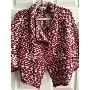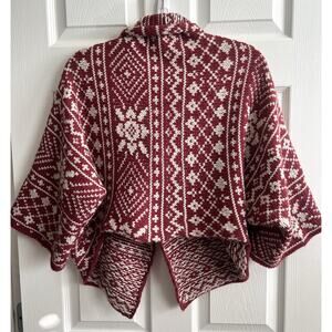 CABI Women's Red Nordic Fair Isle Wool Blend Cropped Cardigan Shrug