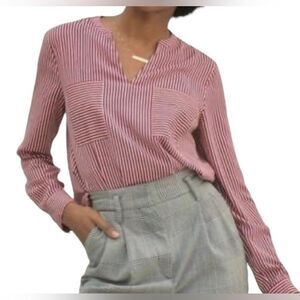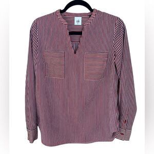 CABI Red White Blue Stripe V-Neck Long Sleeve Top Blouse Women's X-Small