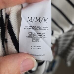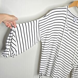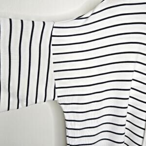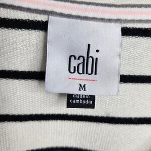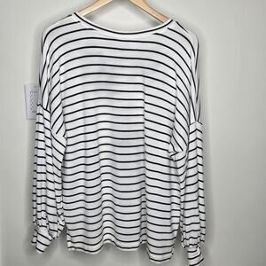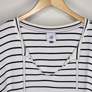 CABI Relaxed Fit Casual White and Black Striped Women's Longsleeve Veck Top