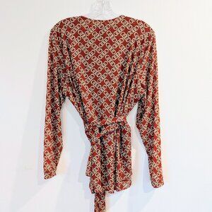 CABI Ringleader Wrap Top XXL Rust Orange Red Gold Rings Long-Sleeved V-Neck