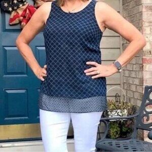 CABI Scallop Sleeveless Top Navy/Black Sz M #3783 NWOT