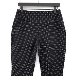 Cabi Seaside Chic Dot Trouser Cropped Pants in black with small white dots. Side zipper closure with button closure, no belt loops. No side stretchy, but up and down stretch. Great condition!