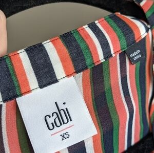 CABI Sheer Striped Tunic Blouse XS Oversized Bishop Sleeves