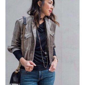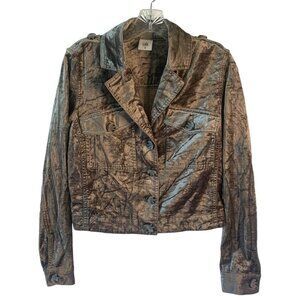 CABI Silvery Taupe Sunday Topper Velvet Button-Up Short Women's Jacket Size XS
