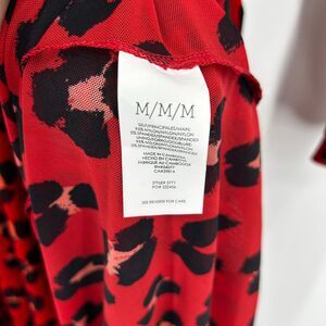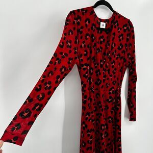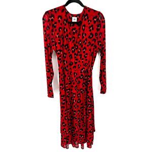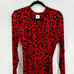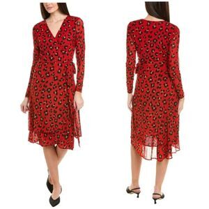 CABI Siren Red Black Leopard Print Sheer Sleeve Midi Wrap Dress Size Medium