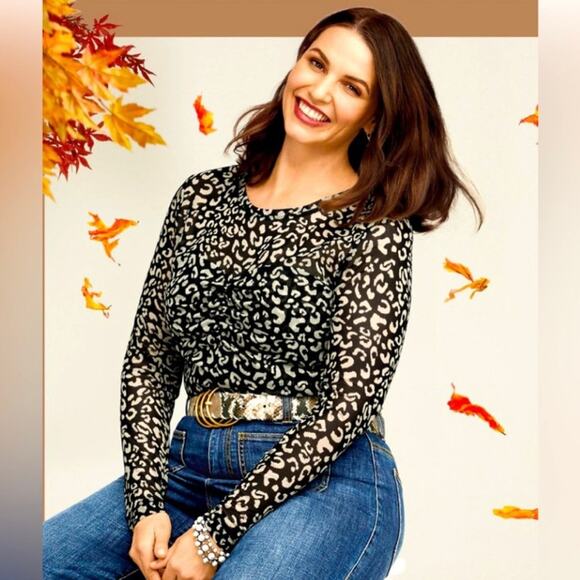 Keywords: cheetah animal print top blouse shirt fall autumn layering