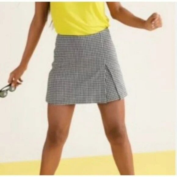 CAbi Tee Time Skort Black/White Checkered Sz 10; hidden side zip and button closure;