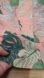 A soft chiffon in a peachy pink color with a monster leaf print