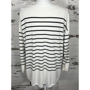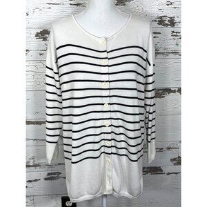 CABI Turnabout Button Front Cardigan Sweater White Black Stripe Sz M #6164 EUC