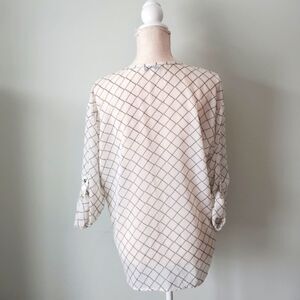 CABI WOMEN'S BLOUSE SHEER BLACK AND WHITE V NECK CUFFED SLEEVE SIZE XS