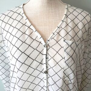 Cabi women's blouse. Size XS. Sheer. 100% polyester. V neck. Cuff sleeve. Has pocket. Black and white.