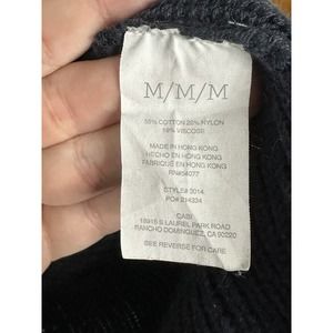 This Cabi women's navy blue waffle knit cardigan sweater is a versatile addition to any wardrobe. With an open front and long sleeves, it's perfect for layering in the fall, winter, and spring seasons. The size is medium and it features two pockets, making it both functional and stylish.