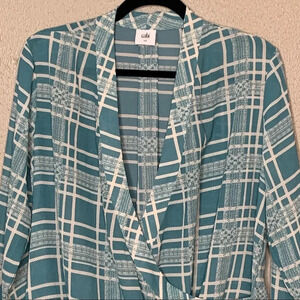 CABI Windowpane Plaid Surplice Hi-Lo Blouse Size M and cardigan size M