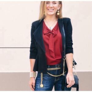 Gorgeous sleeveless blouse by CABI in a bold red with a flattering tie-neck and gathered neckline. Lightweight, breezy, and perfect for layering or wearing solo—great for work or casual style.