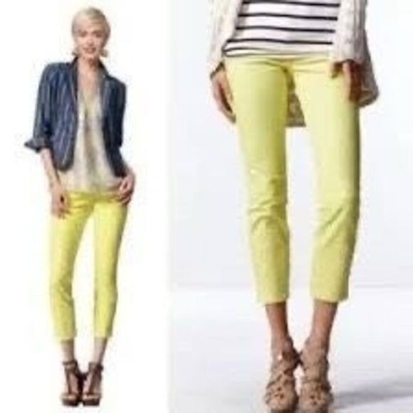 CABI Women's Yellow Limon Bree Cropped Straight Leg Jeans Size 4