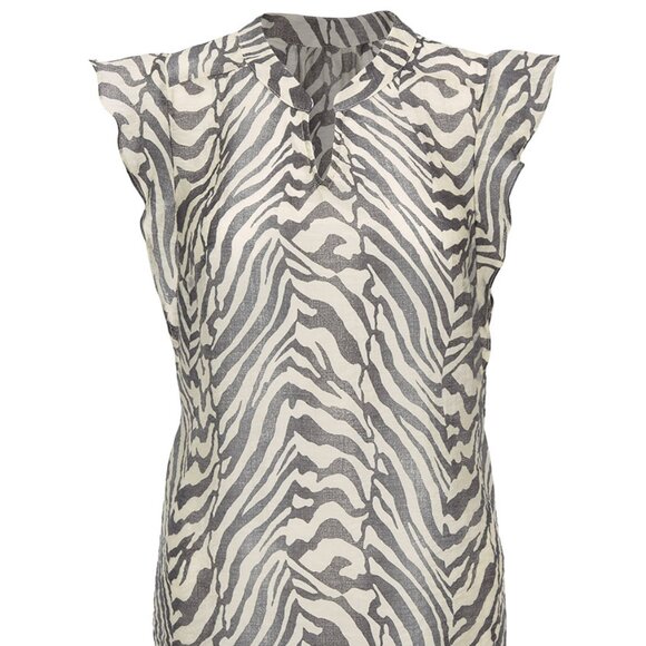 Available in our all-new silky touch fabric, the Savanna Top comes in a zebra skin print that offers good coverage with a lightweight feel. It has a pullover design with ruffled cap sleeves and a V-neckline. Bring a little wildlife to the concrete jungle.