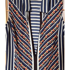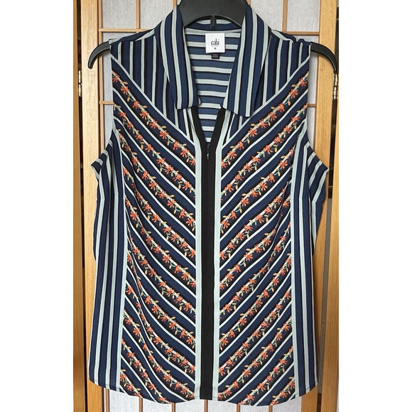 CABI striped & floral sleeveless blouse zip front Medium
