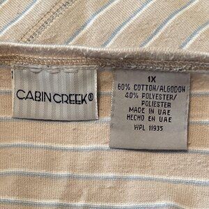 CABIN CREEK WOMENS TOP Plus Size 1X BEIGE with STRIPES Pullover 1100A