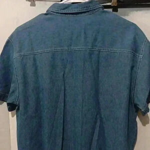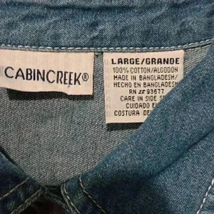 "CABIN CREEK" Womens Button DwnTop L Denim Shirt Short Sleeve W/Red,White, Blue