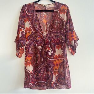 CABI Purple Paisley Sheer Front Tie Kimono/Coverup Size Small