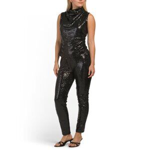 CABLE & GAUGE Black 2pc Sequin Embellished Cowl Neck Top And Pants Set