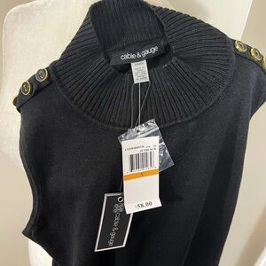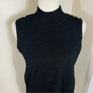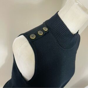 CABLE & GAUGE Black Turtleneck Button Shoulders Sleeveless Sweater Top - SMALL