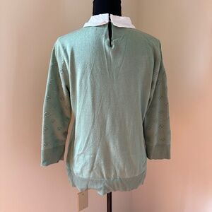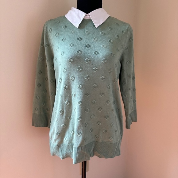 *CABLE & GAUGE* Green x White Collar Long Sleeve Shirt Size Large