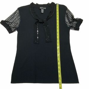 Cable & Gauge Sheer Black Sequined Ribbed Top Size Medium